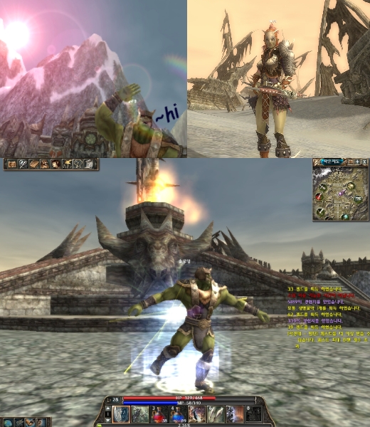 어렵게 생각할게 없다네. 블룸 이펙트는 얼짱 사진들에서 많이 보던 ‘뽀샤시’ 효과라고 이해하면 쉬울 것이고, 글로스 맵은 예를 들자면 캐릭터가 입고 있는 갑옷에 비춰지는 빛과 동작에 따라 그 모습이 달리 보이면서 질감까지 느껴질 정도로 세밀한 그래픽 효과라네~. 그냥 쉽고 간단히 설명하자면 여타 웬만한 게임보다 ‘뽀대’가 좋아졌다라고 할 수 있지. 아래에 있는 스샷을 참고하시게나~.