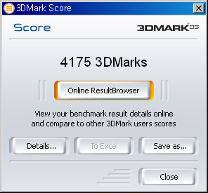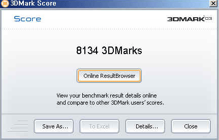 ▲3DMARK 03(350) 버전에서 테스트한 점수(사양이 높으면 1만점이 넘는다) |
