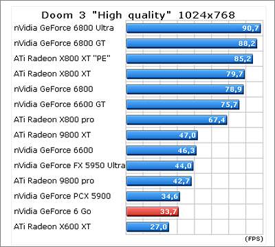 ▲엔비디아에서 발표한 DOOM 3 벤치마크 결과만 보면 동급에서는 지포스가 우위다 |