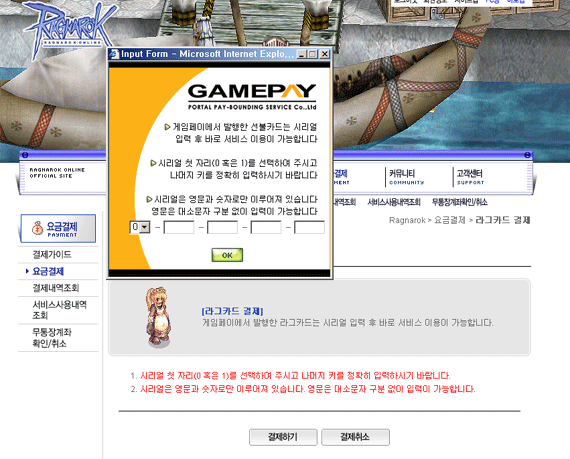 현재 온라인게임 결제수단으로 신용카드결제, 휴대폰결제, ARS결제, 무통장 입금, 상품권, 전자화폐 등의 결제방법 있으며 게이머들은 자신이 편한 방법으로 이용료를 지불하고 해당 게임을 즐기고 있다. 그러나 위에서 열거한 결제방식중 신용카드. 휴대폰, ARS 결제방식이 가장 많은 이용량을 보이고 있으며 대표적인 후불결제방식이다. 그리고 이용요금 결제와 관련해 가장 많은 잡음이 들리는 방식이기도 하다. 특히 미성년자가 많이 이용하는 아이템 유료화 방식의 경우 환불요청이 최고 20%에 이를 정도로 심각한 사회문제로 인식되고 있다. |