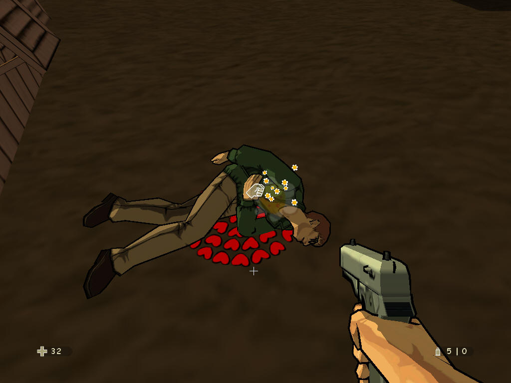 F2키를 누른다음 ‘flowerpower 1’ 치트키를 입력하면 자신의 총알은 꽃으로 적의 피는 하트가 되어 만발한다. 무수한 조화(弔花)를 발사하면 적의 마음에서 하트가 빠져나오니 남의 사랑을 뽑아버리는 기분으로 엔딩까지 가보자.