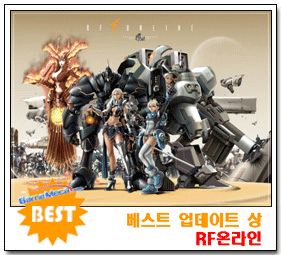 베스트 업데이트 상 - RF온라인 지난 10월 11일과 13일 기가 업데이트라는 이름으로 대규모 업데이트를 무려 2번이나 해버린 RF온라인은 상용화를 얼마 남겨두지 않은 시점에서 혹자들이 ‘기가막힌 업데이트’라고 말하는 일을 해치웠다. ‘기가 막히다’는 의미가 좋은 뜻으로도 나쁜 뜻으로도 사용되긴 했지만 심사위원단의 평가는 업데이트의 규모와 내용면으로는 상당한 수준이었다는 것이 중론이다. 조만간 공중에 떠있는 맵 ‘천공의 대륙-이더(이하 이더)’를 새롭게 추가하고 신대륙으로 이동할 수 있는 우주 수송선이 신설되는 ‘카르텔라 전기 서막 업데이트’가 진행될 예정이니 업데이트 양과 내용면으로 RF온라인은 이미 다른 게임을 넘어섰다. |