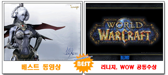 동영상 - 리니지, WOW 공동수상 최고의 동영상은 서슴없이 리니지 ‘생과 사’와 WOW의 오프닝 공동수상이다. 리니지 에피소드 2 ‘하늘과 땅’에 이어 7개월 만에 등장한 ‘생과 사’는 다크엘프의 침공으로 피폐된 인간의 대반격을 모티브로 ‘라스타바드’의 내부세력과의 치열한 전투를 그려내고 있는 업데이트로 그 내용을 동영상으로 만들어 공개하면서 스토리를 간략하면서 인상깊게 그려내주고 있다. WOW 오프닝 영상은 ‘역시 블리자드’라는 감탄사가 나올만큼 아제로스 대륙의 여러 종족들이 거친 자연과 싸우며 대립하는 모습을 환상적으로 표현하고 있다는 점이 특징으로 지난 5월 E3에서 공개된바 있는 영상으로 나이트엘프 드루이드가 표범으로 변해 물을 튀기며 달려가는 모습을 보는 순간 감탄사를 내뱉고 마는 환상적인 영상이다. 리니지의 NC소프트 김택진 사장도 지난 E3에서 WOW의 이 영상을 보고 감명을 받았다고 털어놨으며 그때의 충격으로 이번 리니지 ‘생과 사’의 동영상에 더욱 신경을 썼다는 후문이다. |