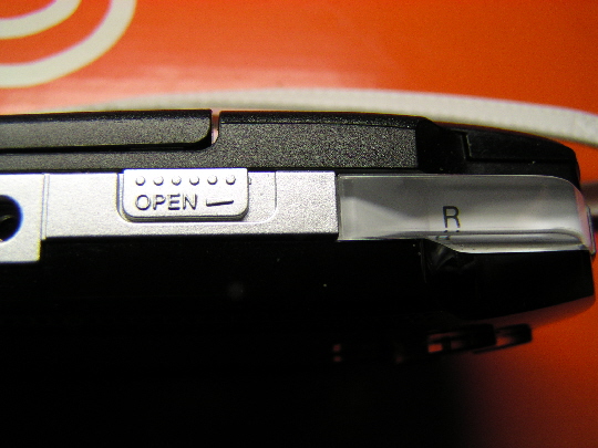 문제는 우측에 위치한 OPEN 버튼이다. PSP는 과거 MD나 워크맨, CD 플레이어에서 사용했던 것과 거의 같은 방식으로 매체를 삽입하게 되어있다. 즉, 철제 걸쇠로 뚜껑을 잡아두고 버튼을 당겨 이를 풀면 뚜껑이 알아서 열리는 방식인데, 이 같은 방식으로 뚜껑을 여닫는 부품은 물리적인 충격에 매우 약해 고장 나기 쉽다. 이는 기기의 부피를 줄이기 위한 고육책으로 채택된 방식이겠지만 어쨌든 아쉬운 건 아쉬운 거다.