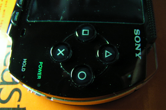 우선, 버튼 배치부터. PSP의 버튼 배치는 같은 소니의 가정용 게임기인 PS2의 듀얼 쇼크와 거의 같다고 할 수 있다. 십자키와 버튼 자체의 조작감 및 감도 역시 거의 마찬가지. 이는 이미 PS2에서 쓰기에 불편하지 않음이 밝혀졌기 때문에 긴 이야기는 하지 않겠다. 아쉬운 점은 십자키와 버튼의 거리가 너무 벌어져 있어 뭔가 어색하다는 점인데, 다행히 조금만 시간을 들이면 금방 익숙해질 수 있다.
