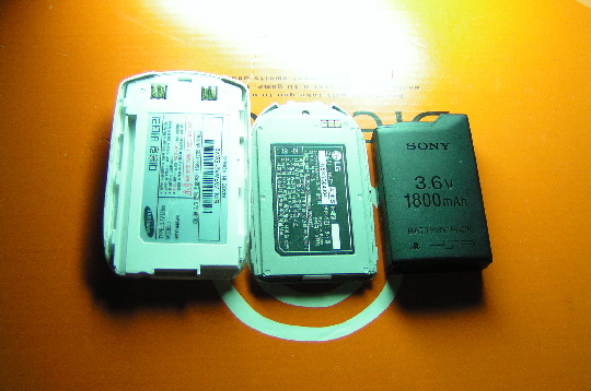 ▲ 일반 휴대폰용 배터리와의 크기 비교. 크기가 상당히 작다는 것을 알 수 있다