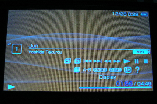 ▲ PSP의 MP3 구동화면. 음질은 적절한 수준이지만 세부 기능 등이 아쉽다
