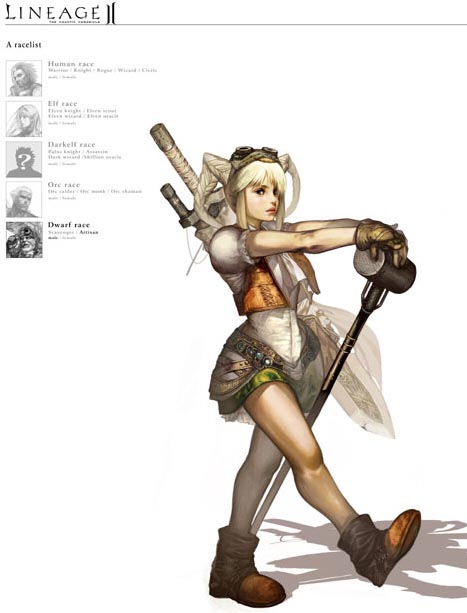 “사실 국내 게이머가 수용할 수 있는 범위 내에서 오크를 좀 더 오크답게, 다크엘프를 좀 더 다크엘프답게 그려보고픈 마음이 있었지만 제 주장이 완전히 관철될 수 없었다는 부분에서 아쉬움이 남았습니다. 그런 상황에서 드워프 종족을 새롭게 디자인해야하는 임무가 떨어졌습니다. 서양식 설정대로라면 드워프 여성에게도 수염을 붙여 그려야하겠지만 그걸 국내게이머들이 받아들일 수 있을 것 같진 않았습니다(웃음). 그래서 지금의 귀여운 형태를 고안해 냈는데, 이를 두고 반신반의하는 의견이 많았죠. 특히 리차드개리엇이 이 그림을 보고 경악을 금치 못했던 기억이 나는군요”