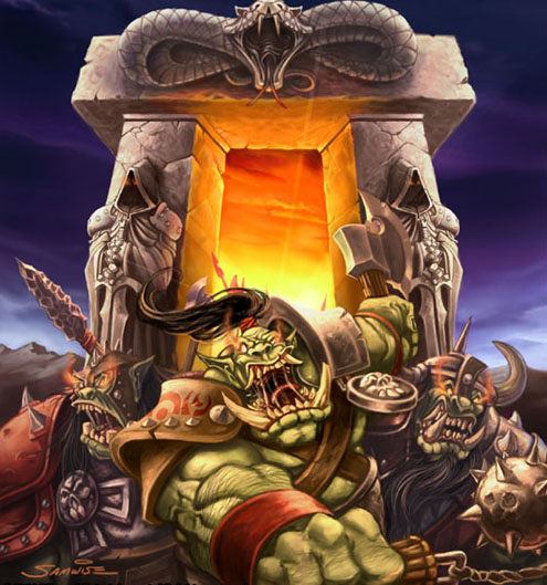 ▲ 불타는 군단의 피를 마신 오크는 광폭한 전사로 거듭났다. 하지만 후에 그들이 지불해야 할 피의 대가는 종족의 운명을 바쳐야 할만큼 엄청난 것이었다 |