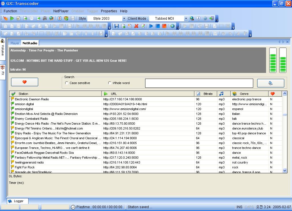 이 NetPlayer 기능은 전세계의 이런 인터넷 방송을 하는 무리들을 리스트로 정렬하고 방송의 Ping, 주소, 방송에서 주로 틀어주는 장르, 음질 등을 표시해줍니다. 디폴트 설정은 독일 방송입니다. 따라서 이것저것 방송을 찾다보면 "이히 듸슈르 부르레 뽄드루샤"와 같이 독일어 공부를 하지 않은 사람은 쉽게 알아들을 수 없는 말을 볼 수 있으니 살며시 무시해 주시고요.