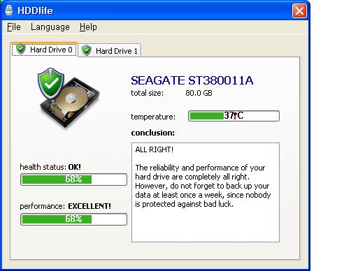 S.M.A.R.T 기술을 기반으로 사용자의 시스템에 장착된 하드디스크의 온도와 기능 이상 여부를 모니터링 해주는 HDDlife입니다.