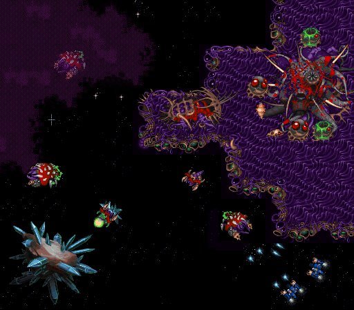 ▶ 우주 한가운데 자리잡은 저그. 이름이 짐작조차 가지 않는 유닛이 난무한다 -_- |