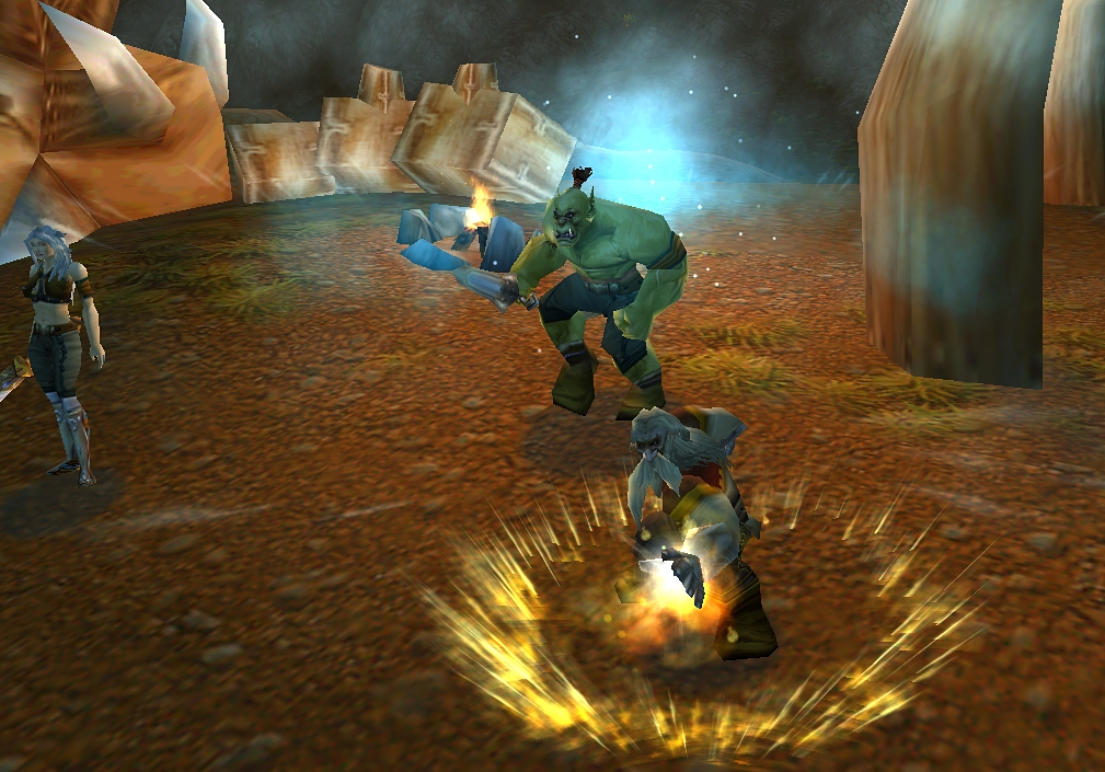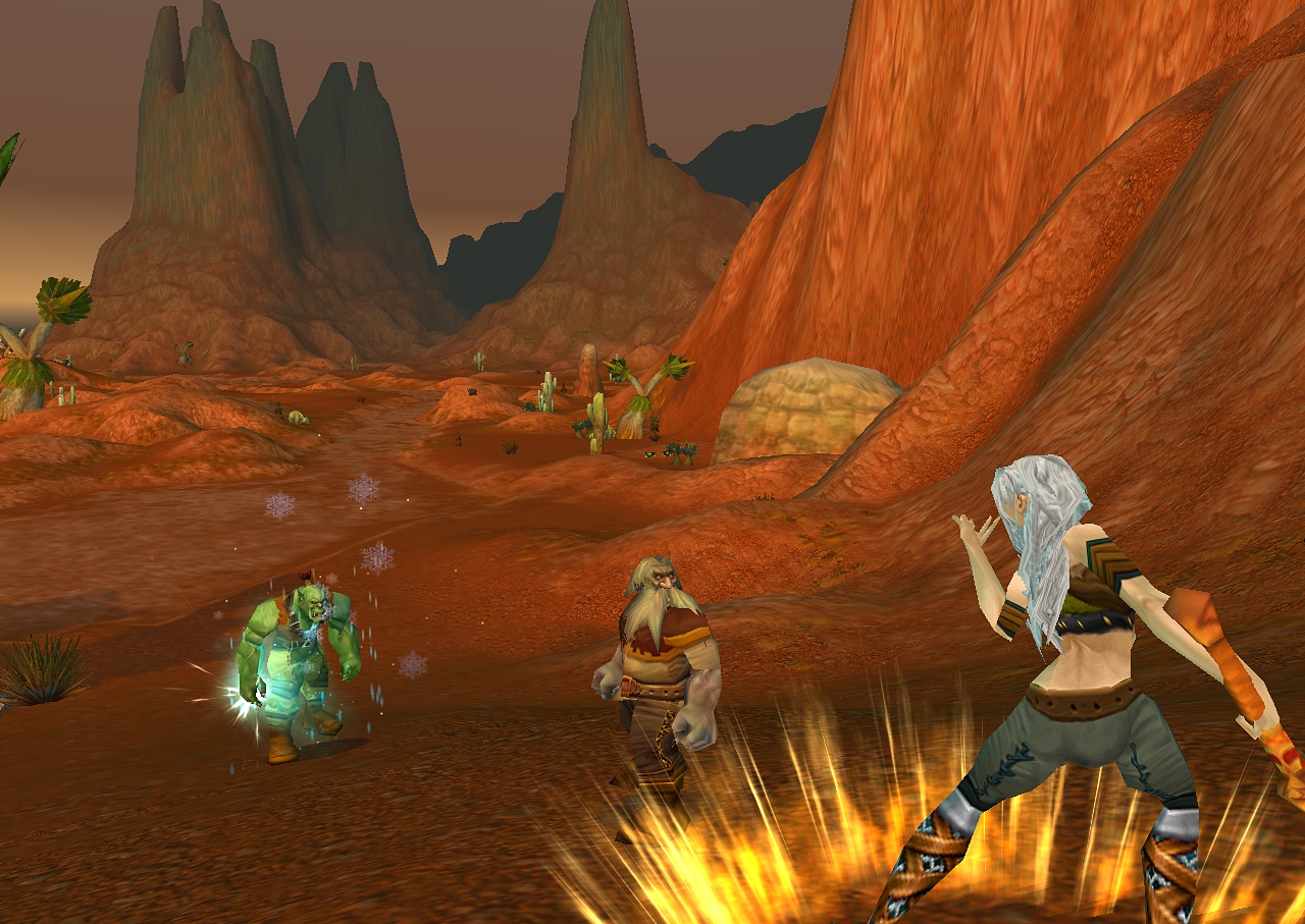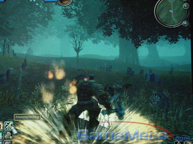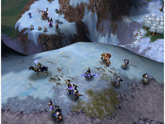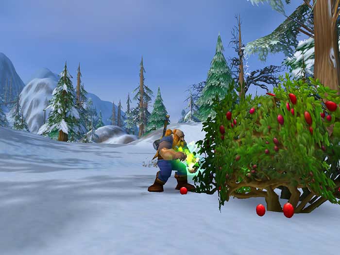마치 전략시뮬레이션을 연상시키는 언발란스한 모습의 인터페이스는 둘째치더라도 지금의 WOW에선 볼 수 없는 각종 마법효과(온 몸에 오오라가 펼쳐지는 모습)는 초기버전이 ‘뽀대’에 상당한 노력을 기울였다는 사실을 알 수 있다. 또 길에서 열매를 따고 있는 드워프의 모습 등 현재는 구현되지 않은 다양한 기술 역시 흥미롭다.