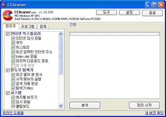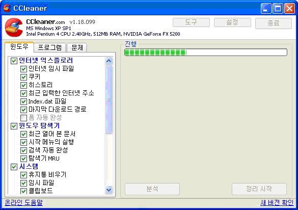 CCleaner는 기본적으로 이런 찌꺼기 파일과 히스토리, 레지스트리를 말끔히 청소해주는 기능을 제공합니다.