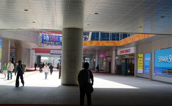 그 말이 정말일까. 다시 터미널을 거쳐 스페이스나인으로 발걸음을 옮겨보았다. 언뜻 든 생각이지만 동선이 참으로 애매하다. 옛날처럼 지하철역사에서 나와 터미널, 나진상가, 전자랜드 혹은 선인상가로 움직이던 동선은 마치 칼로 무우를 벤 듯 스페이스나인과 그 외의 지역으로 나뉘어져 있었다. 어디부터 들려야할지 애매했고 어떻게 가야할지조차 헷갈릴 정도로 애매한 위치가 아닐 수 없다.