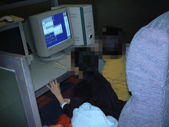 1시간쯤 걸려 소개받은 PC방을 가보니 입구부터 분위기가 천지차이다. 인테리어라고는 흰색 페인트칠을 한 벽에 겨우 어둠을 밝혀주고 있는 조명뿐. 다만 PC는 대부분 최신형이고 의자 역시 가장 좋은 것으로 마련되어 있었다.
