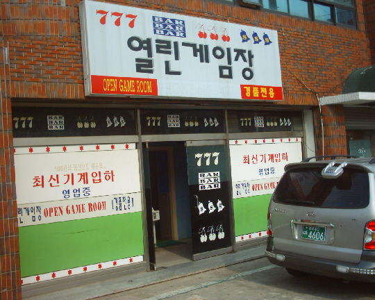 ▲ 그러나 우리나라의 오락실은 안이 보이지 않게 셀로판 테입으로 유리창을 덧씌우는 등 음지화를 추구(?)한다 |