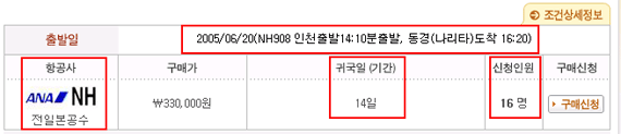 두 번째: 할인항공권(외국항공, 공동구매, 유효기간설정, 시간 및 노선 변경불가 적용)