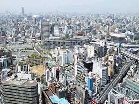 미도스지센 우메다 역 5번 출구로 나가면 갈 수 있는 이곳은 오사카의 명물 중 하나. 22시 30분까지 영업하는 공중정원에서 보는 오사카 도심의 야경은 오사카 젊은이들이 프로포즈 배경으로 이용할 정도로 아름답다. 하지만 700엔이란 거금을 들여 입장해야 하는 단점이 있다.