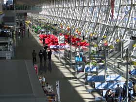 칸사이 지역의 관문이라고 할 수 있는 칸사이 국제공항. 칸사이 국제공항은 인천공항과 같이 바다를 메워 건설한 공항인데다 내부 인테리어가 친환경을 테마로 하고 있어 도쿄에 있는 나리타 국제공항이나 홋카이도에 있는 신치토세 공항에 비해 아늑하고 편안한 느낌을 준다. 비행기에서 내린 뒤 입국심사를 받고 비행기 탑승 전 맡겨놓은 짐을 찾아 다시 세관검사를 통과하면 비로소 여러 분들은 오사카 지역의 공기를 한껏 들이마실 수 있을 것이다. |