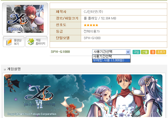 ▲ GXG 사이트의 게임 구입화면. 사용기한 선택 항목조차도 없다 |