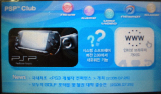 한글 구현과 함께 이번 2.0의 최대 하일라이트! 바로 인터넷 브라우저의 기본 내장이다. 이미 잘 알고 있겠지만 한국에서는 세계 최초로 PSP용 무선인터넷 서비스를 시행 중에 있다. 신규 컨텐츠의 업데이트 속도가 다소 더디긴 하지만 다양한 컨텐츠의 추가와 '내사랑 김삼순'과 같은 인기 드라마를 서비스하는 등 이용할 만한 환경만 된다면 그럭저럭 괜찮은 서비스로 자리잡고 있는 넷스팟 서비스. 시범 서비스 기간을 끝내고 이제 본격적인 유료 서비스로 들어가는 시기인 이 넷스팟이 특성 사이트만을 접속해야 하는 폐쇄형 네트워크 서비스 였다면 이번 인터넷 브라우저가 기본으로 추가됨으로써 인터넷이라는 개방형 네트워크에 마음껏 접속할 수 있게 된 것이다.