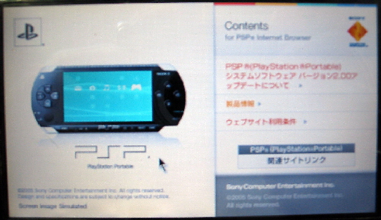 ▲ SCEJ의 일본 PSP 접속용 사이트 |