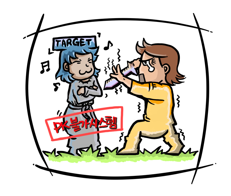 굿도 판을 깔아줘야 하는 것이고 고스톱도 담요가 없으면 제 맛이 안 난다. PK 역시 마찬가지다. 기껏 캐릭터를 키워놨는데 PK가 안된다고 생각해봐라. 준비하는데 걸린 시간은 그렇다쳐도 그 정신적 충격이 어련하겠는가?