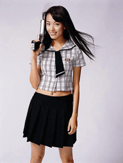 건스터 CF의 배경은 고등학교. 그것도 남녀고등학교에서 ‘한판 붙어볼까?’라는 컨셉으로 촬영한 것이다. 그렇다면 시트콤에서 맡은 배역처럼 자신이 복수해야할 대상을 노트에 적고 심술을 부리는 그 자체가 재미있던 말인가?