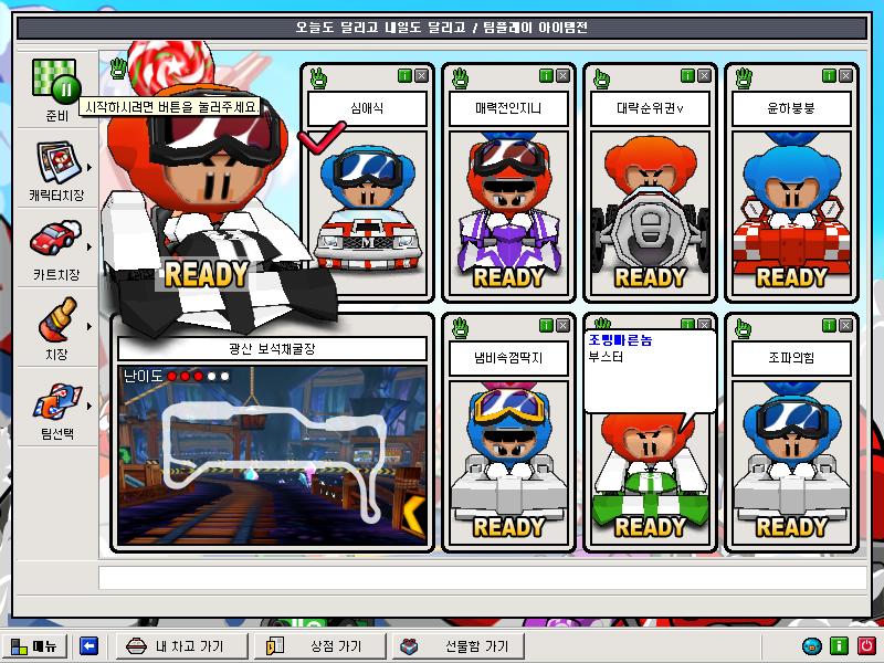 A양이 하는 게임은 오직 하나, 카트라이더 뿐이다. 친구들과 함께 게임을 즐기던 A양은 오늘도 집 근처 PC방에서 카트라이더를 실행시켰다. 평소처럼 방을 만들고 친구들을 초대했는데, 모두들 연습용카트가 아닌 다른 차를 타고 있는 게 아닌가?