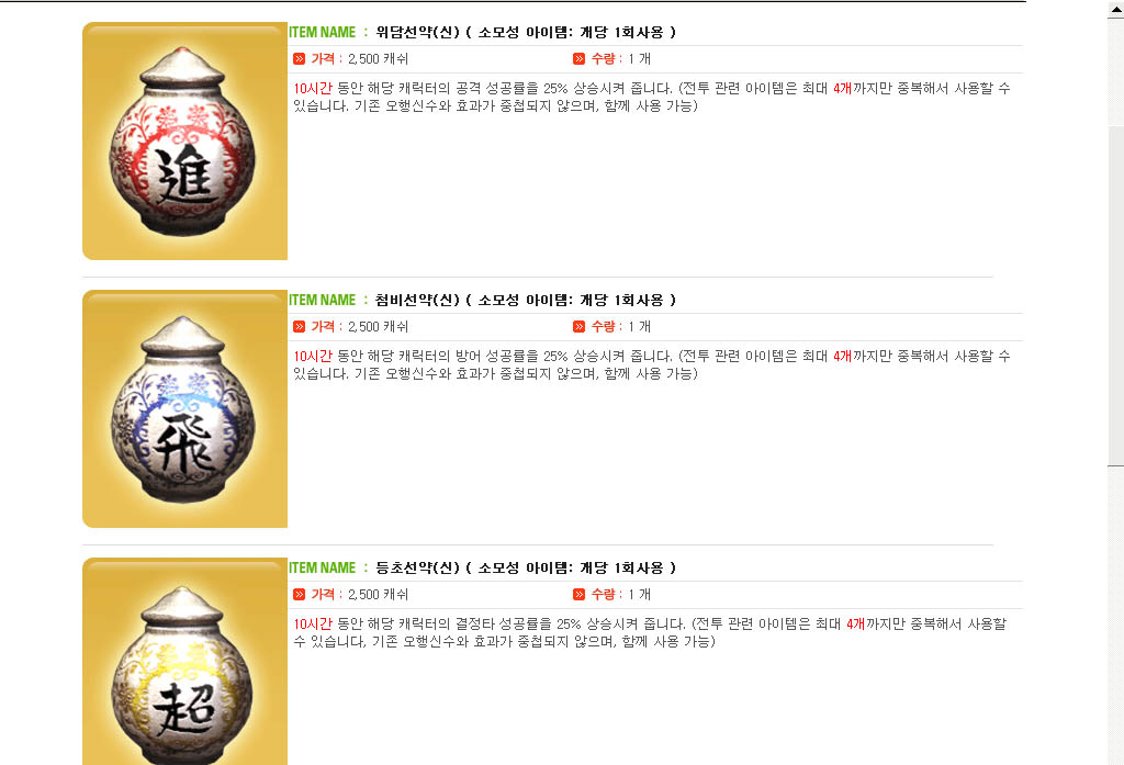 백위신약 (10시간동안 공격력과 명중률 25% 증가) 6개 - 29,400원