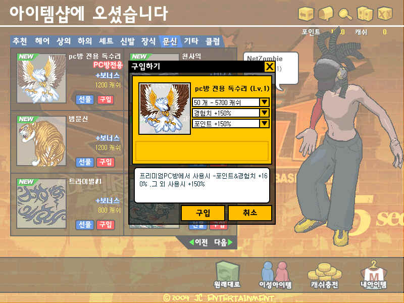 PC방 전용 독수리 50개 (경기 후 경험치 +150%, 포인트 +150%) - 5,700원