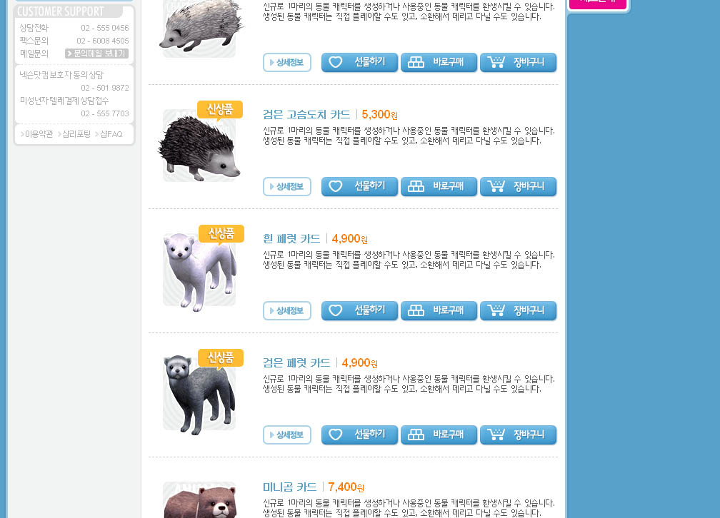 카드 (하루 96분씩 미니곰을 애완동물로 사용할 수 있음) - 7,400원