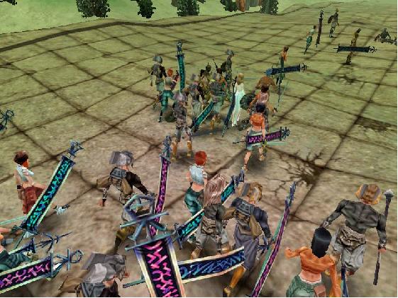 ▲마을 간의 길을 건설한 기념으로 열린 길놀이. 모든 유저들에게 깃발 하나씩을 나눠주었다