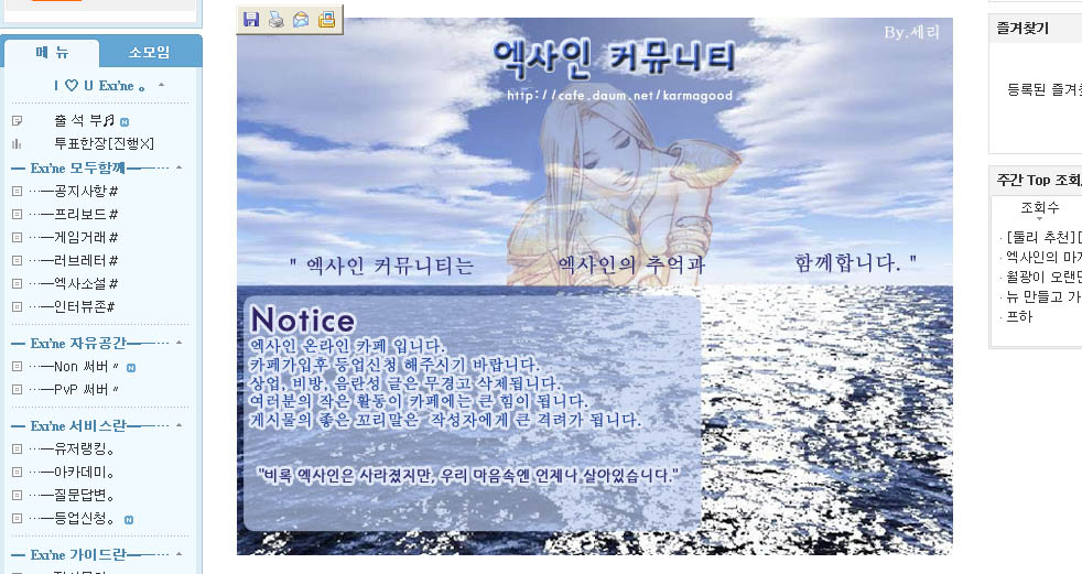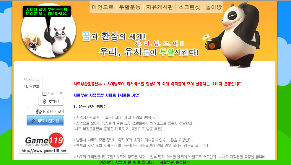 ▲샤로의 대표적인 서명사이트와 엑사인의 팬사이트. 두 사이트 모두 게임의 서비스가 종료된 지 2년이 다되어감에도 불구하고 여전히 왕성한 활동을 보이고 있다