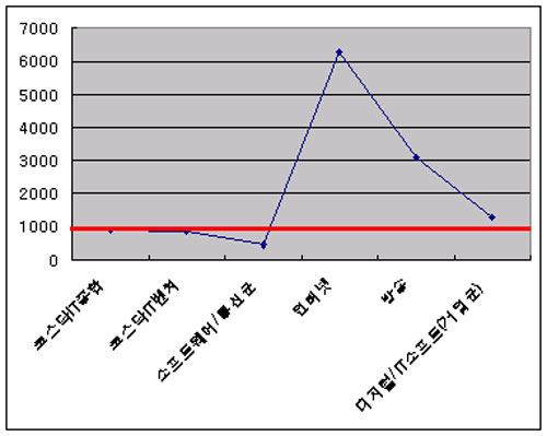 IT가 기록하는 선보다는 높은 편이다. 하지만 인터넷 업종에 비하면 턱없이 부족한 수준의