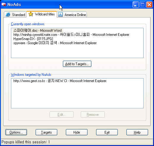 해외 사우스베이 소프트웨어에서 제공하는 무료 팝업감시 프로그램이다. 인터넷은 물론 자신의 PC에서 활성화된 창들을 알기쉽게 보여준다. 영어로 쓰여진 점이 단점이지만, 팝업을 바로 제거할 수 있다는 장점이 있다. 웹 브라우저별로 애드웨어 배포 서버들을 체크해 사전 접근을 차단하는 기능도 가지고 있다.