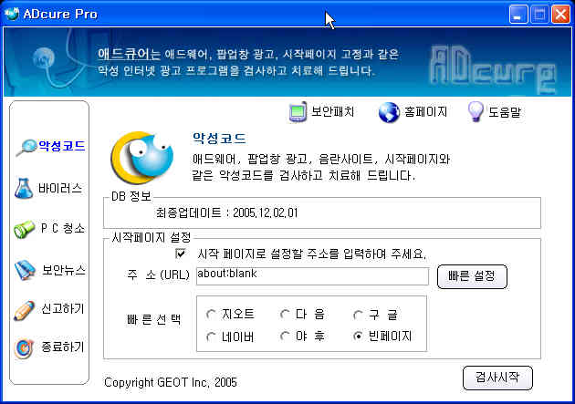 국내 지오트사에서 제공하는 악성코드제거 프로그램이다. 바이러스, PC최적화를 위한 파일제거기능과 인터넷 시작페이지 설정기능도 지니고 있다. 유료로 제공된다는 단점을 가지고 있지만, 깔끔한 인터페이스와 손쉽게 사용할 수 있다는 장점이 있다.