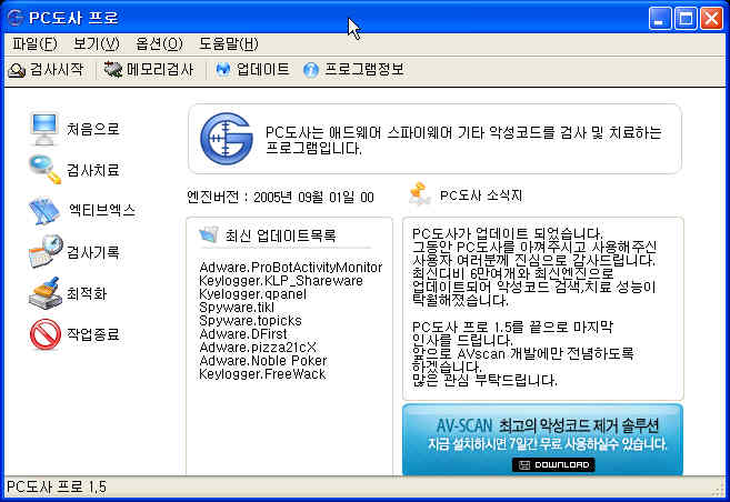 국내 이지글로벌 네트워크사에서 제공하는 악성코드제거 프로그램이다. 악성코드의 차단기능 및 PC최적화, 메모리 검사기능도 지니고 있다. 무료로 제공되며 실행속도가 빠르다는 장점이 있다. 단, 개발진이 AV-SCAN이라는 새로운 악성코드제거 프로그램에 투입돼 더 이상 업데이트가 되지 않는다는 단점이 있다. 2005년 9월 이전까지 등장한 악성코드에 대해 유효하다.