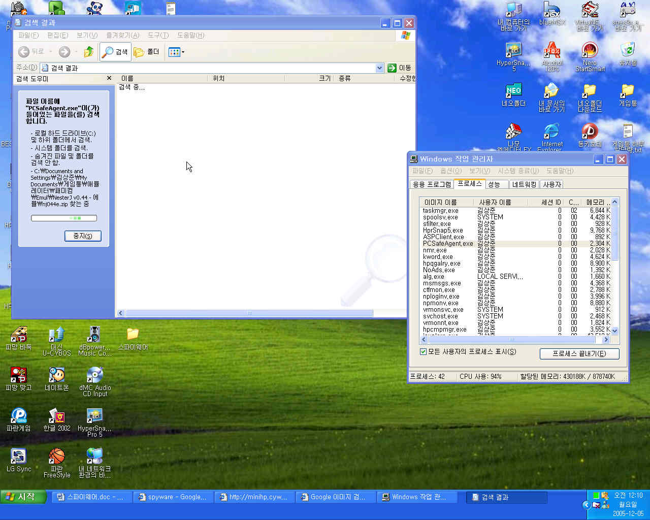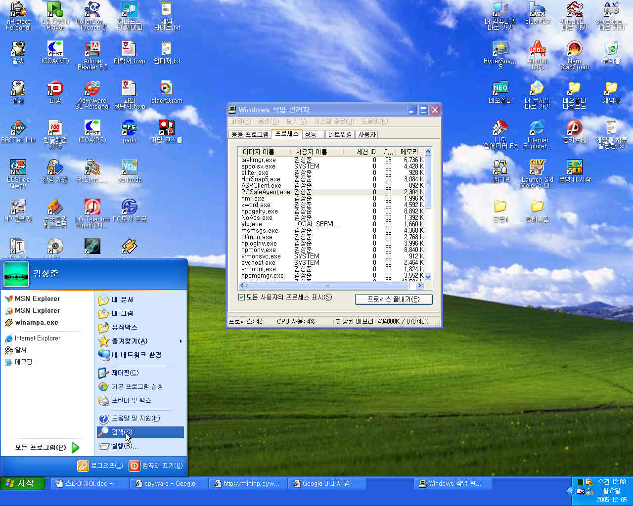 ▲작업관리자를 실행해 의심되는 프로세스를 조사