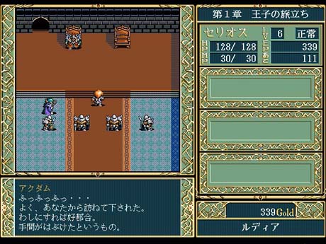 게임은 주인공 세리오스 왕자가 16세가 되어 양도했던 왕권을 돌려 받고자 하는 것에서부터 이야기가 시작된다. 루디아 성으로 돌아온 세리오스는 아버지의 죽음에 현재 파리온 왕국의 재상 아크담이 연관된 것을 알게 되지만, 곧 그에 의해 감옥에 갇히고 만다. 수도사 류난의 도움으로 감옥에서 탈출한 세리오스는 아크담에 대항하는 레지스탕스 조직을 찾아 여행을 떠난다.