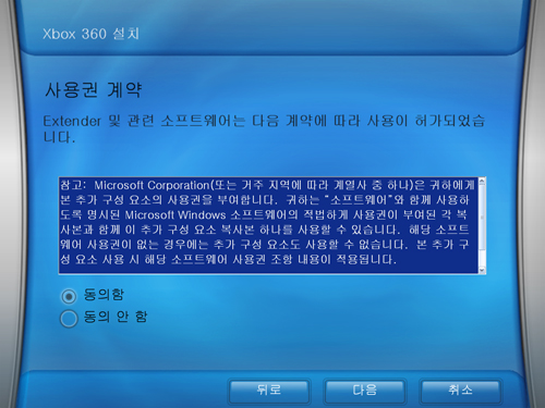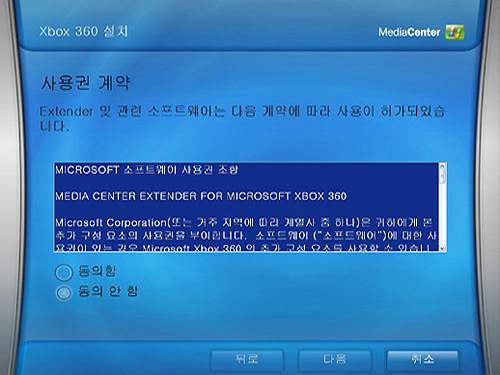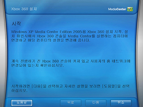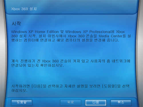 1. 소프트웨어 설치가 완료되면 이제 PC에서 Xbox360을 연결하기 위한 설정을 해야 한다. [다음] 버튼을 눌러 설치를 계속 진행한다