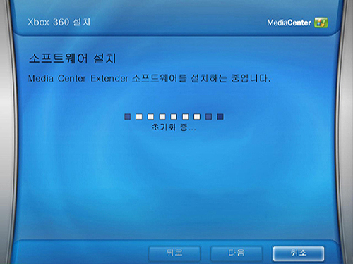 3. 미디어 센터 익스텐더 (Media Center Extender) 소프트웨어 설치과정이 표시된다. 완료되면 [다음] 버튼을 클릭하여 설치를 계속한다
