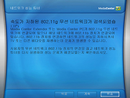2. 이 화면은 무선 네트워크를 사용했을 때 벽이나 장애물 등으로 연결속도가 만족스럽지 못함을 보고하고 있다. 또한 이 문제를 어떻게 해결할 수 있는지에 대한 해결방법도 제시된다