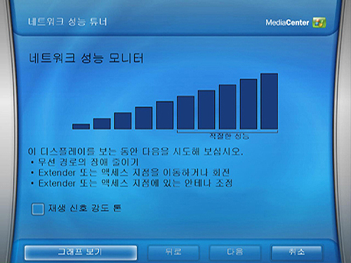 4. 무선 네트워크 연결 상태가 그래프로 표시된다. 6칸 이상의 연결상태를 보인다면 충분한 성능을 보이는 것이다