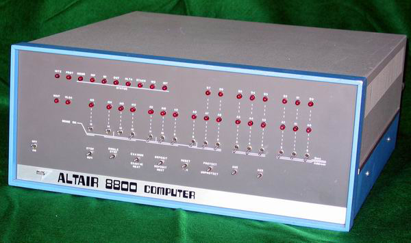 상업적으로 성공한 최초의 PC는 1974년에 발매된 ‘알테어 8800(Altair 8800)’이었다. 이 컴퓨터는 퍼스널 컴퓨터라는 용어를 처음으로 고안한 에드 로버츠(Ed Roberts)가 개발한 제품으로, 인텔의 8080 마이크로 프로세서와 256Byte 칩을 사용했다. 키보드나 모니터, 외부 저장장치가 없었기 때문에 프로그래밍을 하려면 본체의 스위치를 조작해야 했다.