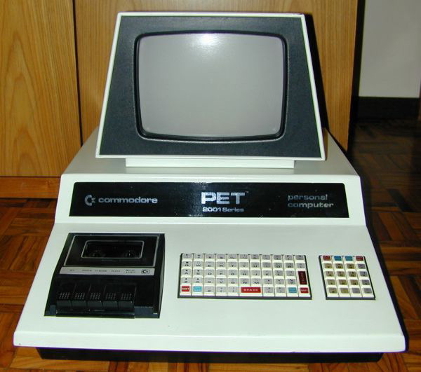 현재의 PC처럼 모니터와 키보드, 저장장치를 갖춘 최초의 PC는 1977년에 만들어진 코모도(Commodore)의 ‘PET 2001’이었다. 이듬해 애플(Apple)에서 ‘애플 2(Apple II)’를 발표하기 전까지, 코모도의 PC는 시장에서 가장 높은 점유율을 유지했다.