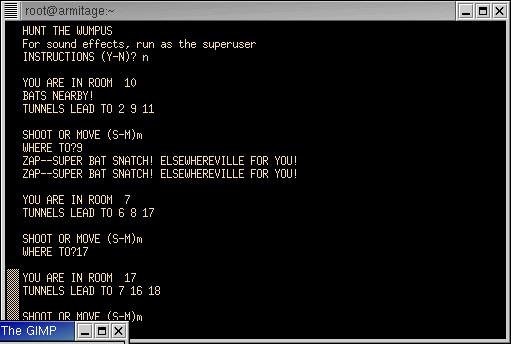 모니터가 없었음에도 불구하고 1972년에 MIT의 그레고리 욥(Gregory Yob)은 최초의 PC 게임인 ‘움퍼스(Wumpus)’를 만들어냈다. ‘움프’라고도 불리는 이 게임은 텍스트 기반의 어드벤처 게임으로, 사무용 메인프레임을 기반으로 만들어졌지만 일반 PC에서도 즐길 수 있었다. 다섯 개의 화살로 무장하고 동굴을 돌아다니면서, 여러 장애물을 극복해 움프스라는 생물을 찾는 내용이었다.