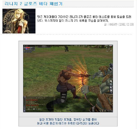 (아쉽게도 1999년 해당 기사가 없어 2002년 리니지2 클로즈 베타 체험기 기사를 대신 소개합니다)