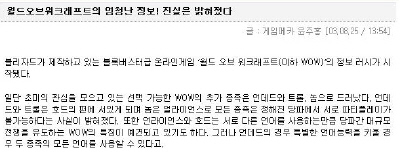 월드오브워크래프트의 엄청난 정보! 진실은 밝혀졌다 (2003.08.25)